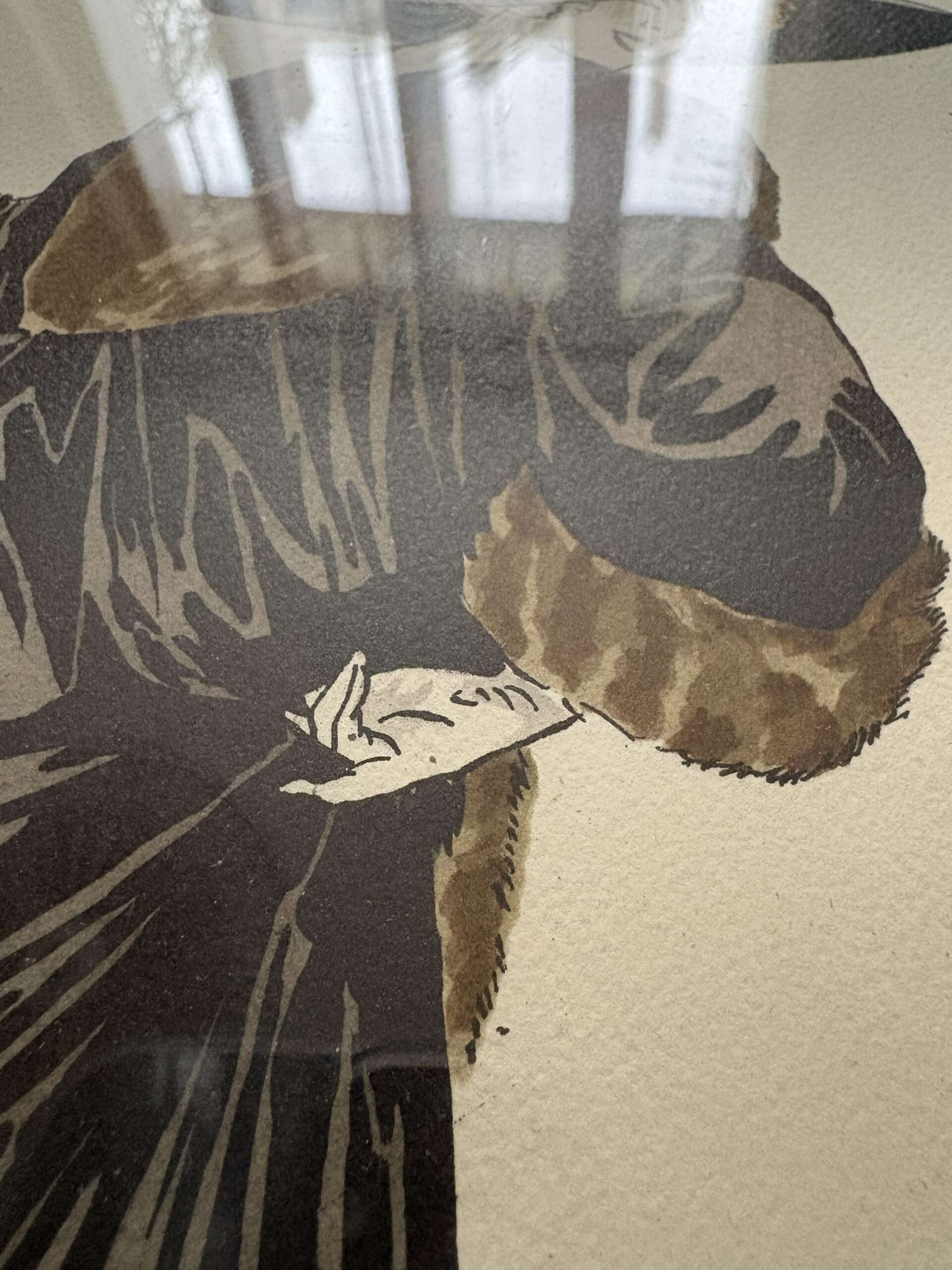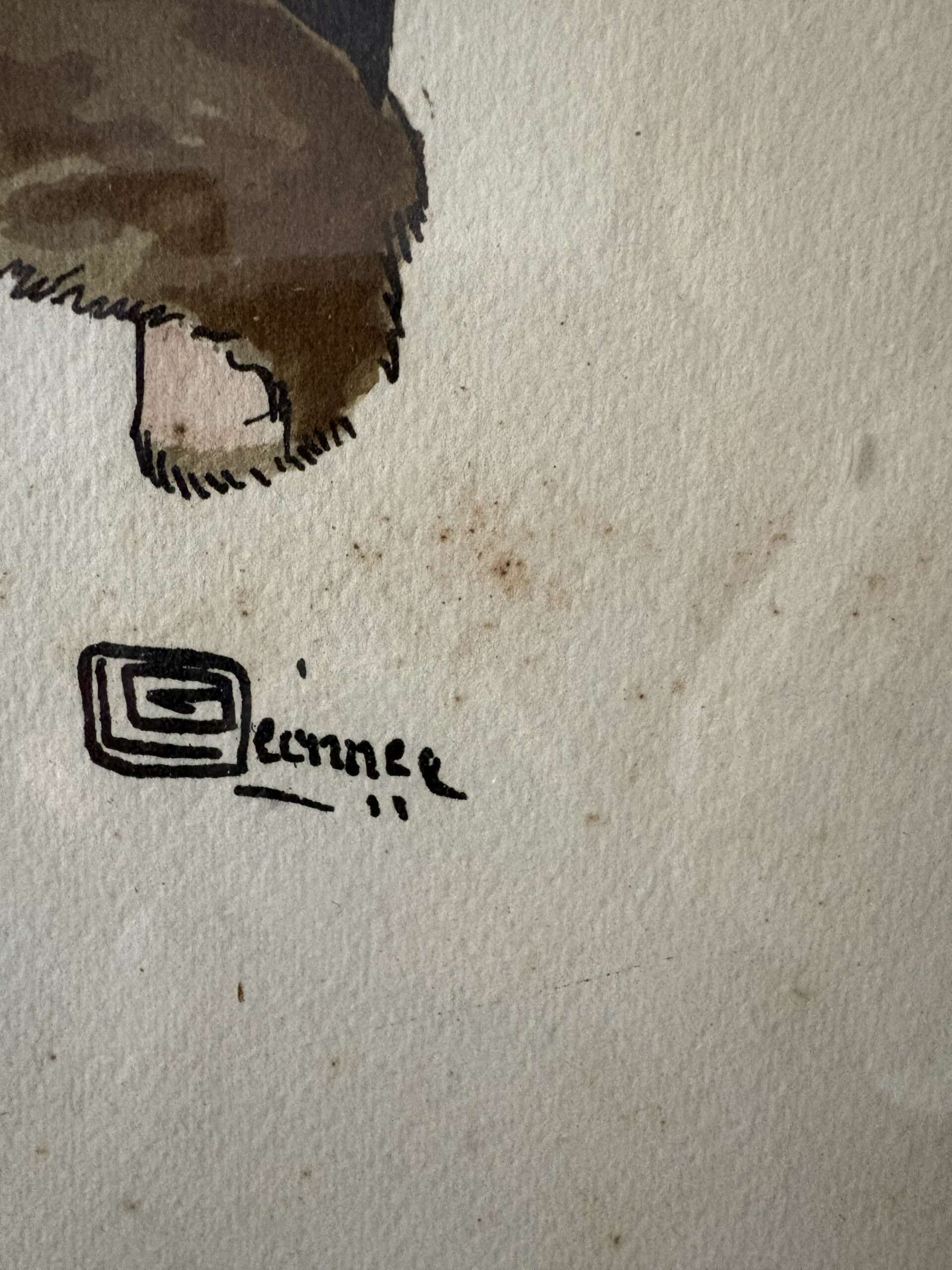 La composition est typique du style de Léonnec : silhouette élancée, lignes stylisées et grande finesse graphique. Les teintes brunes semblent rehaussées à la main apportant relief et chaleur à l’ensemble.