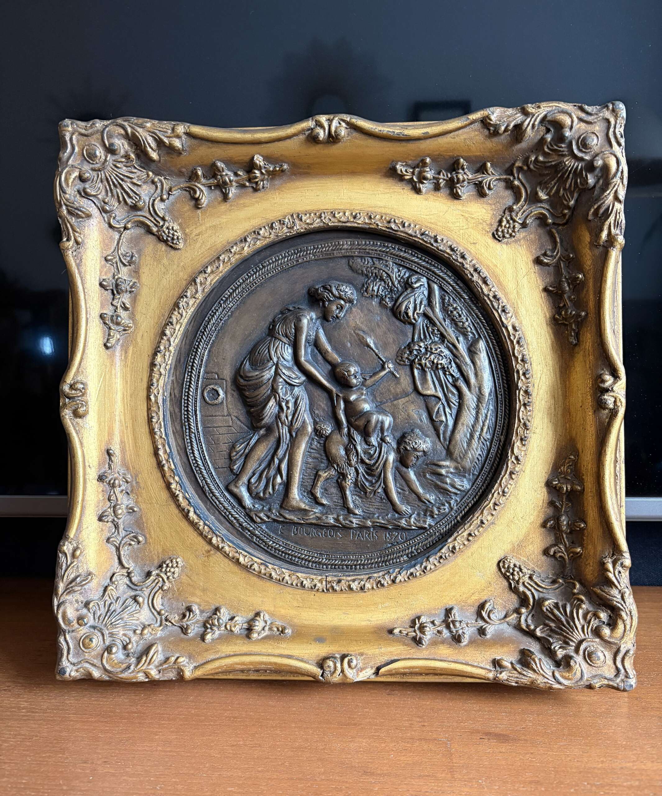Plaque de bronze signée E. Bourgeois Paris 1870.