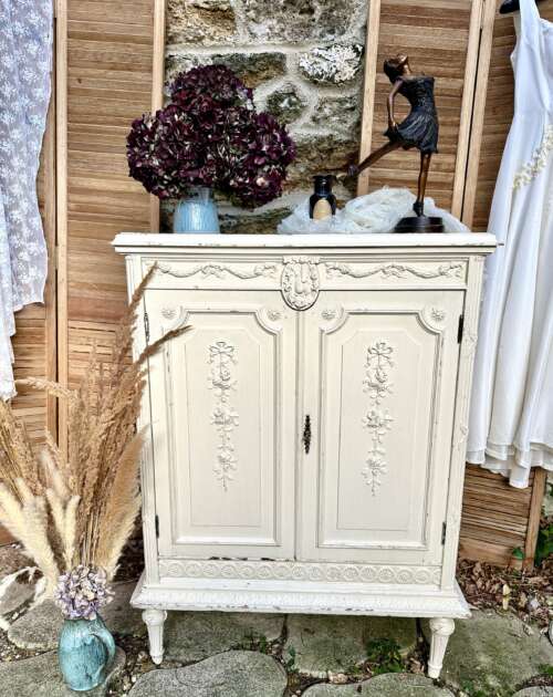 Meuble buffet patiné style Louis XVI plateau en marbre