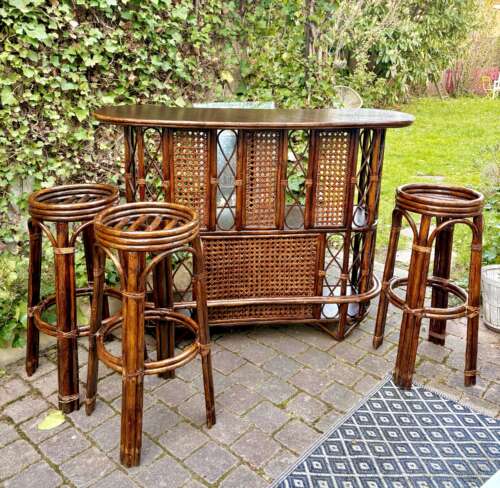 Bar en rotin et ses 3 tabourets